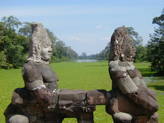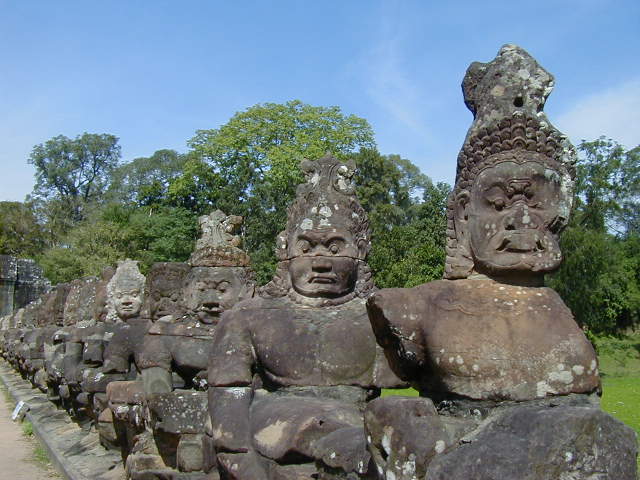 The South Gate to the Angkor Thom area. The long serpent the demons are holding is a Naga. Nagas are popular symbols in Buddhism, though I think they originated in Hinduism.