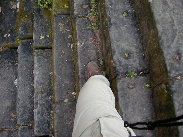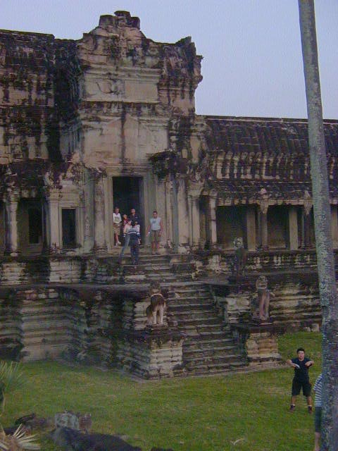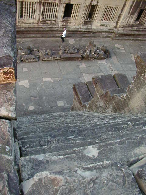 The Royal Palace. I put the first two pictures in to give an idea of how treacherous the steps are. The steps in the second picture are steeper than average, but all the steps were steeper than they ought to be. The last photo was from a small temple nearby. It gives an idea of the typical width of the steps. The Angkor people must have had small feet.