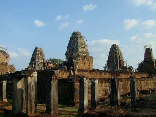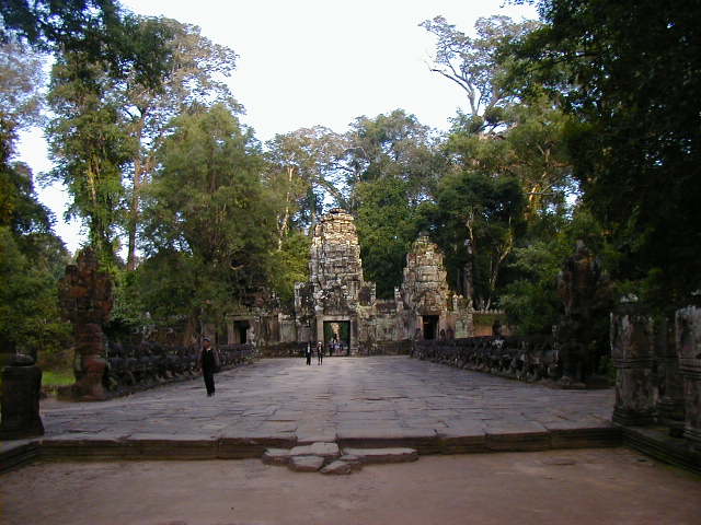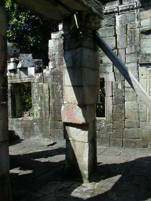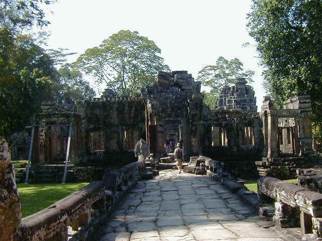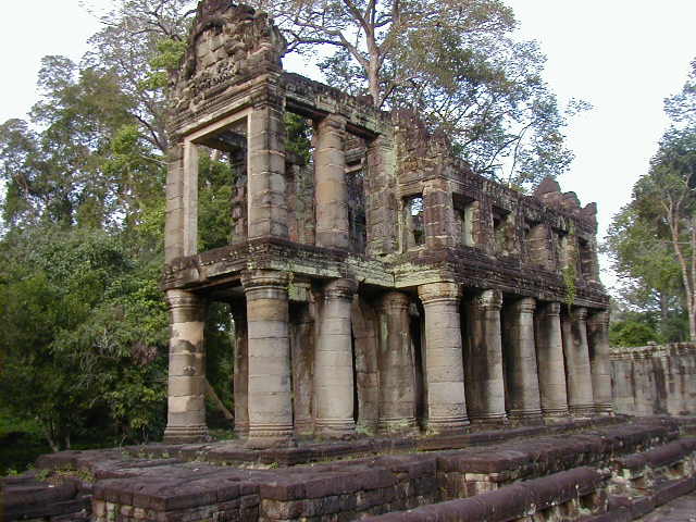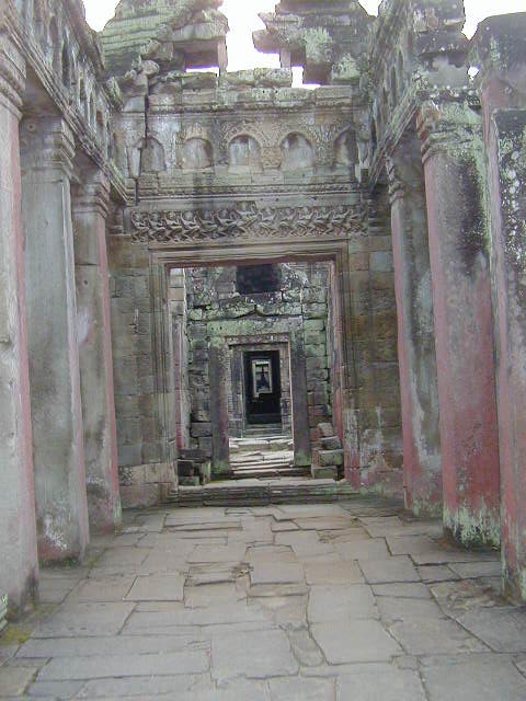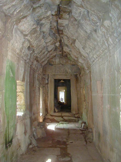 Preah Khan, a huge temple complex, with a building that looks surprisingly like a Greek temple. The last two pictures are of an overgrown side entrance and the hall I had to walk through to reach it. I thought it looked kind of cool.