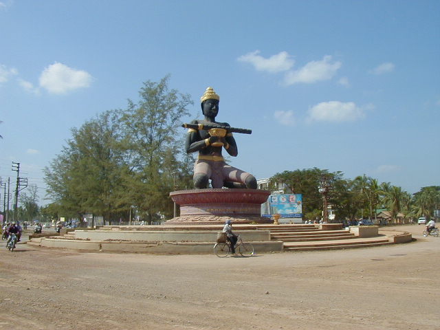 On 27 November I caught a $50 flight from Phnom Penh to Battambang. I could have saved money by spending a very long day on a road worse than the one to Siem Reap, but decided to spoil myself and fly. Battambang is Cambodia's second largest city, though it struck me as being quite small. My guidebooks said Long Beach California has more Cambodians. Battambang has nice French Colonial buildings, but the city would benefit with some fresh paint and the removal of some tacky signs. It also has some interesting statues, the kind that were once common in Cambodia before war and looting made them disappear. An interesting stop, but not worth a long visit.