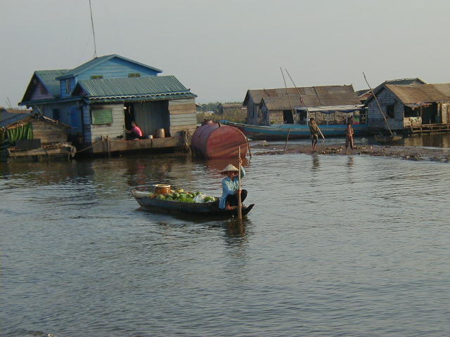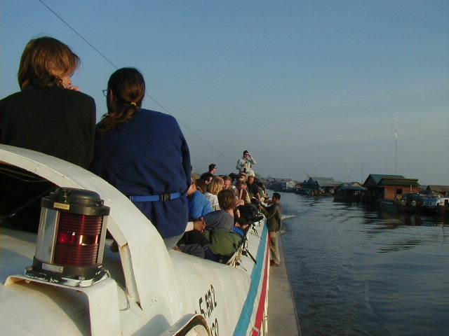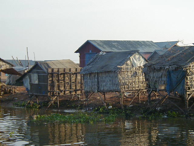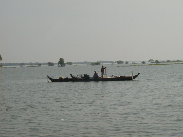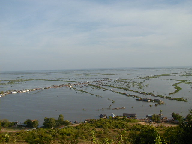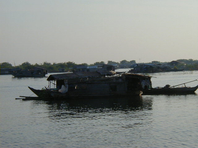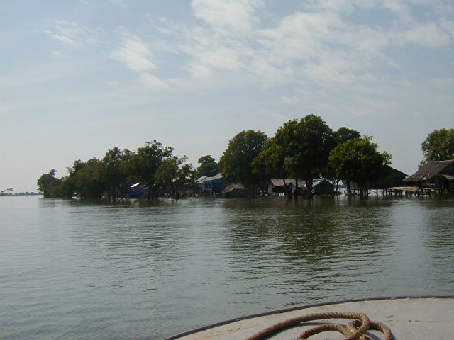 I left Siem Reap by boat on 21 Nov '01, heading across the Tonle Sap lake and down the river to Phnom Penh. Along the way I got some shots of the fishing community and some of the trees flooded by the lake. 80% of Cambodia's population survives by subsistence farming and fishing. The fishing community is well off by Cambodian standards, but can only stay that way so long as the Mekong stays unpolluted and runs naturally. I couldn't help but notice that in Laos and Cambodia, both very poor nations, the people use rivers as their water source and sewer. I also read that China is planning several dams on the upstream Mekong. I have a nasty suspicion that upstream development on the Mekong may cause big problems for people further downstream.