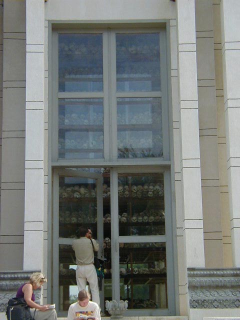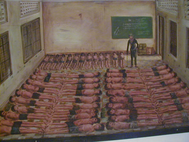 Covering much more recent history is the Tuol Sleng Museum. It was once a secondary school, but in 1975 the Khmer Rouge turned it into Prison S-21, a detention, torture and execution center. The sign at the entrance to the museum stated that the prisoners were "peasants, workers, technicians, engineers, doctors, students, Buddhist monks, teachers, ministers, Pol Pot cadre, soldiers of all ranks, Cambodian diplomatic corps, foreigners and their wives and children." Those that were not tortured to death were executed at Choeng Ek, one of Cambodia's killing fields. The Khmer Rouge under Pol Pot wanted to turn Cambodia into a Maoist, peasant-dominated, agrarian cooperative, and set about killing anybody that didn't fit into this "ideal". Anyone who didn't look like an ignorant peasant was at risk. People with bad eyes would throw away their glasses out of fear of appearing educated. Out of a population of seven million, between one and two million people died during the rule of the Khmer Rouge from 1975 and 1979. In 1978 Vietnam invaded, leading to a war that lasted into the '90's and resulted in the eventual overthrow of the Khmer Rouge. Vietnam turned the country over to the U.N. when the cost of occupying Cambodia and continuing the guerrilla war with the Khmer Rouge became prohibitive. A peace settlement was negotiated, but none of the big shots of the Khmer Rouge were convicted of anything. Pol Pot died an old man of natural causes while different factions were trying to decide what to do with him.