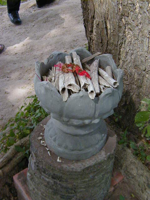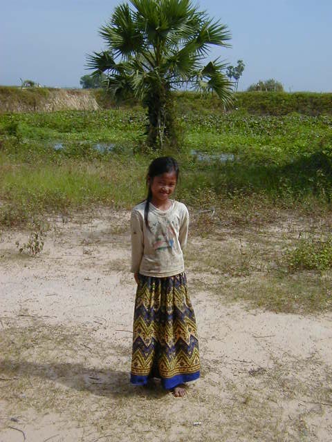 The next picture is of one of the many bare foot beggar children who hang out at Choeng Ek. Most don't ask for money, they ask for "pen-book". I went to the gift shop and bought notebooks and cheap pens to give to the children, who lined up and politely accepted them. I still don't know if this was a scam, but it only cost a few dollars and it seemed to make the children happy. I was told in Siem Reap that in some Wats the Buddhist monks would give free classes. Getting school supplies was up to the students.