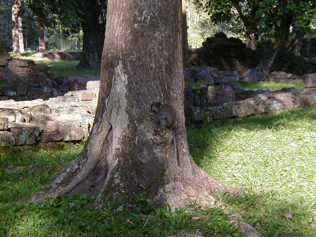 My only monkey shot, and this one is on a leash. I saw many wild monkeys while riding between sites, but never got a good picture of them.