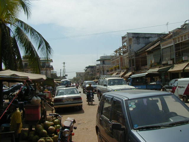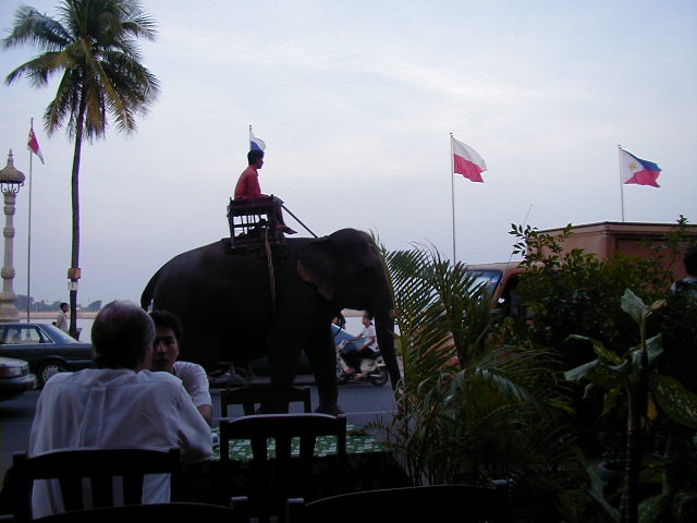 Around mid-afternoon I arrived in Phnom Penh. I went out of intellectual curiosity--the city has a reputation for wild night life. However when I was there the government was cracking down on bars. The official reason was that there was too much drug dealing and prostitution and too many shootings going on in bars. Sounded like silly government harassment to me. The rumor among the ex-pats was that the real reason for the crack down was that Cambodia's Prime Minister had an out of control nephew who had shot up a popular night spot. The Prime Minister was under pressure to take some action, and he refused to let his nephew be arrested, so he shut down bars all over the country. Sharky Bar and Restaurant, a place recommended to me by Dave at the Ivy Bar in Siem Reap, hastily painted over the word "Bar" on their sign and taped over the word on menu's and waitresses name tags. They managed to stay open, but most other places didn't. Apparently Karaoke bars and discos had been popular places for prostitutes to hang out, but closing them just put the prostitutes on the streets outside any places that managed to remain open. I don't think this improved things.