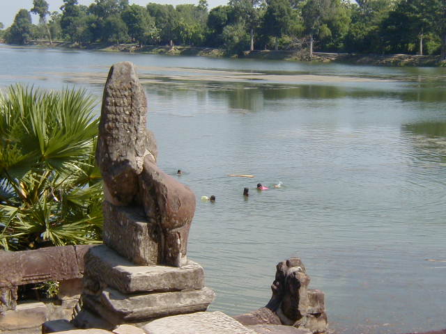 Sras Strang, the King's Pool, and some Cambodian children enjoying it.