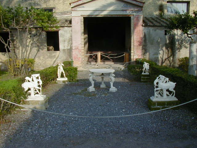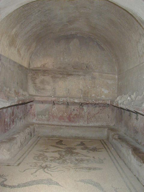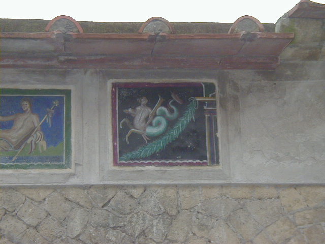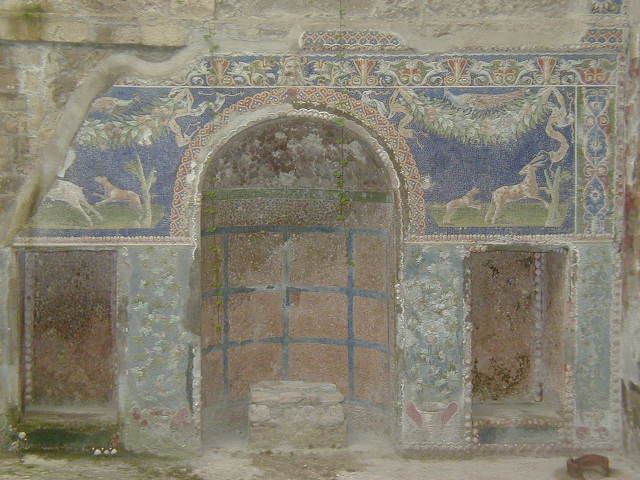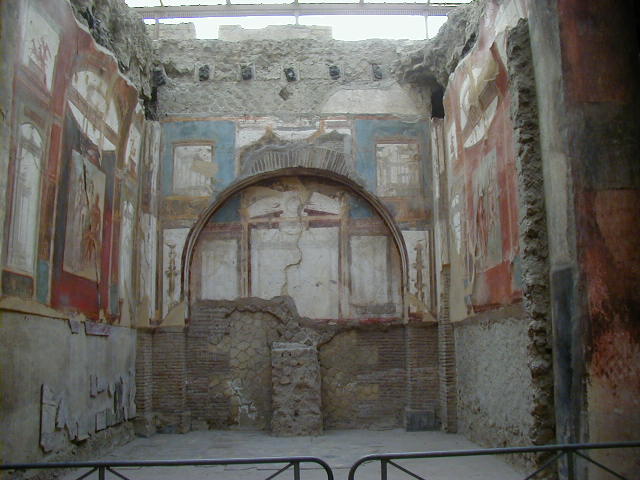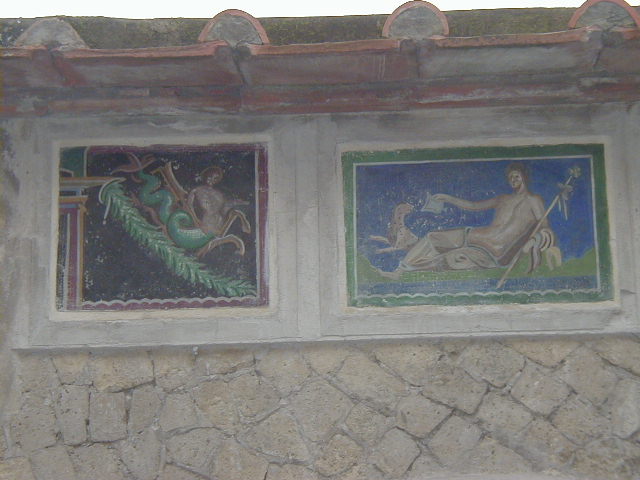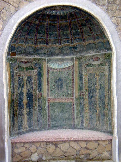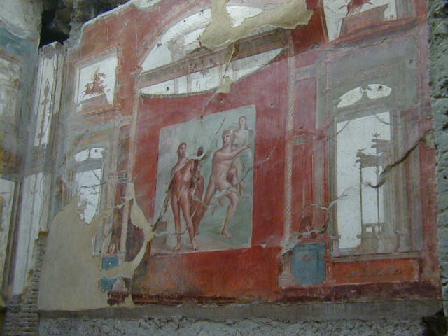 Pompeii has some rich houses with elegant frescoes. Herculaneum has many rich houses with elegant frescoes. For example, the College of the Augustals.