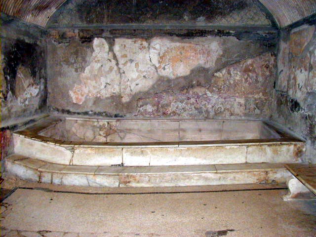 One picture of the exterior and many of the interior of the baths. Some major settling problems in the room with the tub. I guess that will happen over a couple of millennia.