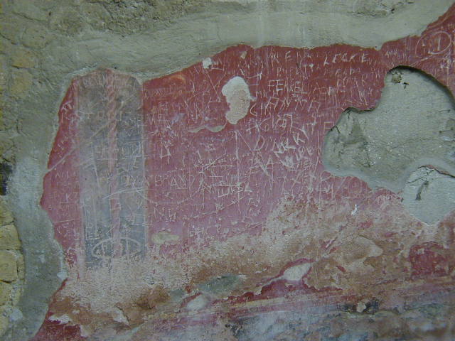 Finally a modern hazard to an ancient city--people who scratch graffiti into unprotected frescoes. Morons.