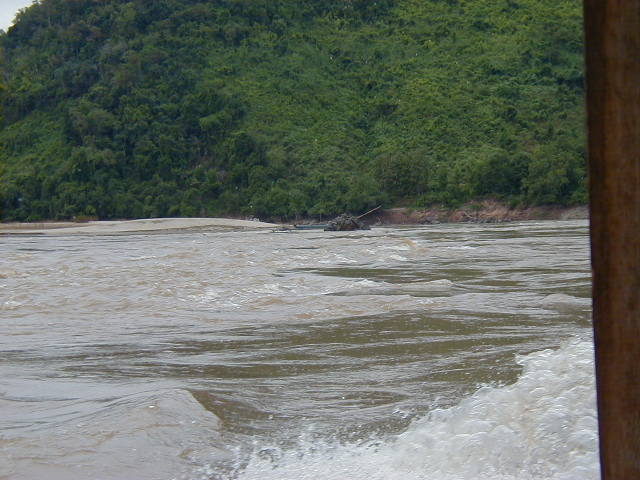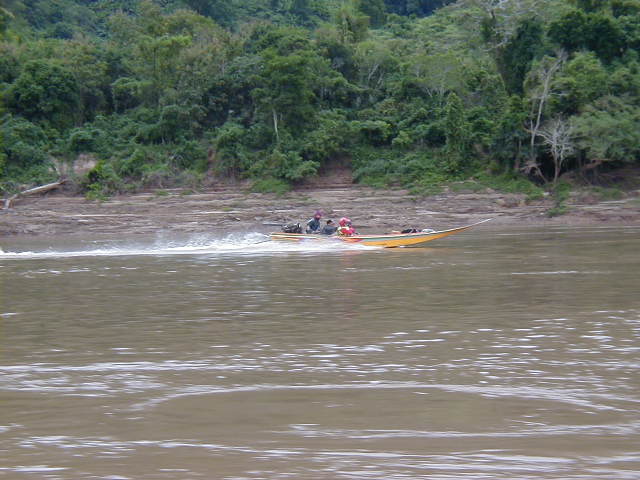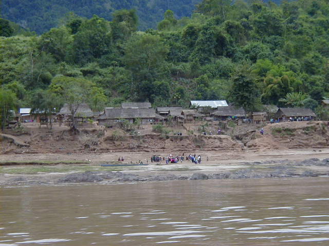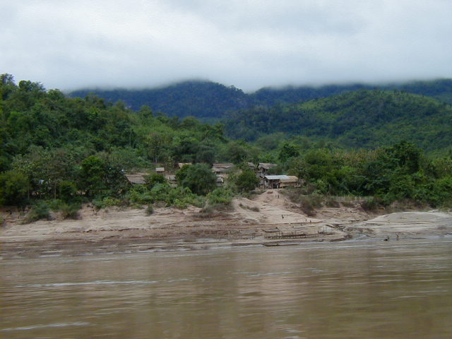 Late on the second day I looked towards the west bank of the Mekong and saw a house with solid walls and utility lines. I knew that had to be Thailand. Until I had visited Cambodia and Laos I thought Thailand was a poor country. Now I know the huge difference between a developing country and a genuinely undeveloped one. After the boring picture of a Thai house I took a shot up river towards the area of the Golden Triangle, where the Thai, Laos and Myanmar borders meet. Last is a picture of the people on my boat. I'll never see them again, but they were a good group that I spent two days in close quarters with.