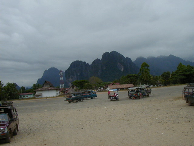A very unflattering shot of an abandoned airfield used by the bus station on the edge of Vang Vieng. The village isn't much to look at; the surrounding area is better.