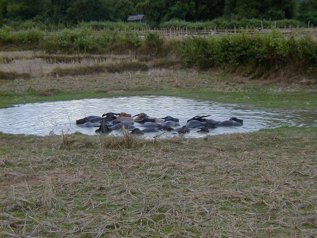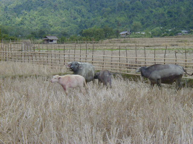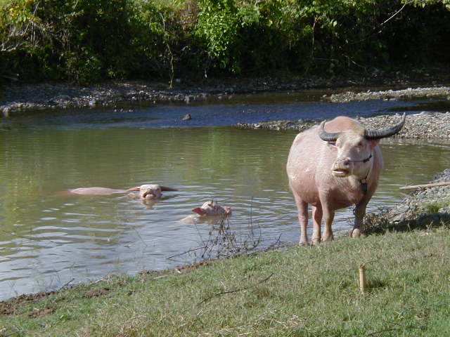 I don't know if water buffalo are used primarily for work, meat, or both, but they are obviously used for something in the area. In North America the white buffalo is supposed to have special significance; I wonder what the pink buffalo means in Laos?