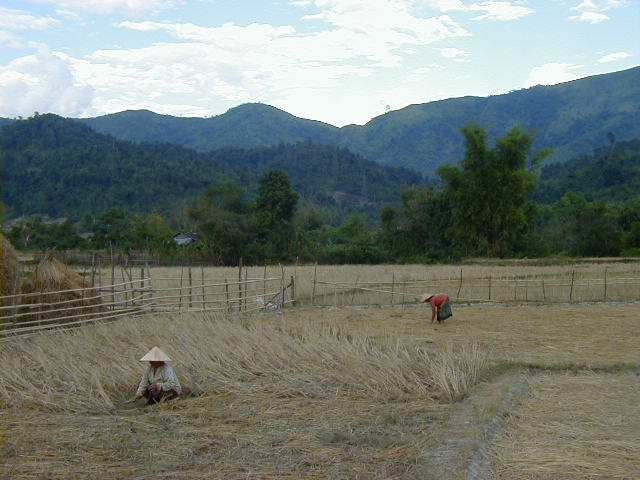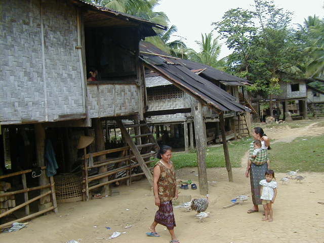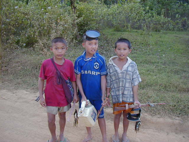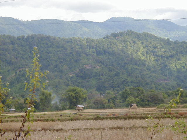 The next day I walked most of the day to see the country and some nearby Laos farming villages. The Laos people were a little more affluent than the Hmong, but not much. They were also subsistence farmers; but I saw an occasional radio and one man with a pipe--that's how I know they were more affluent. There were many children and the only toys I saw were wicker balls they made themselves. Children came up to me and asked for "pen" or "bic". Each village had one or two places where people would sell minor items--soap, tobacco, gum, cheap pens, stuff like that--from a porch in front of the house. I bought up every pen I could find, around 25 total, and gave them all away. The children were very polite, none tried to take more than one, and the lucky ones were extremely pleased with their toy. Unfortunately I ran out of pens long before I ran out of children and many were disappointed.