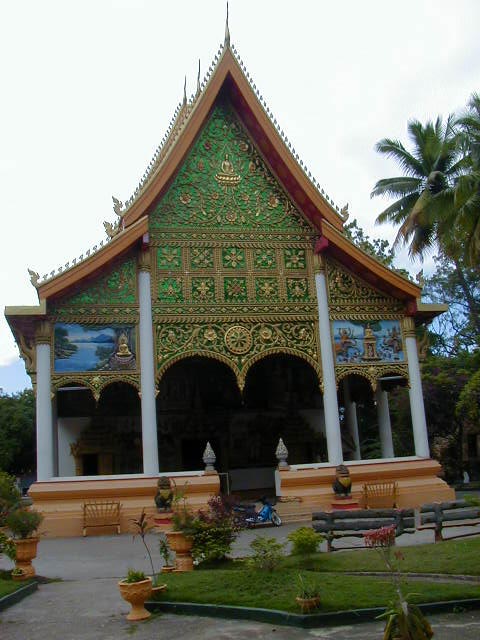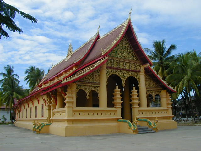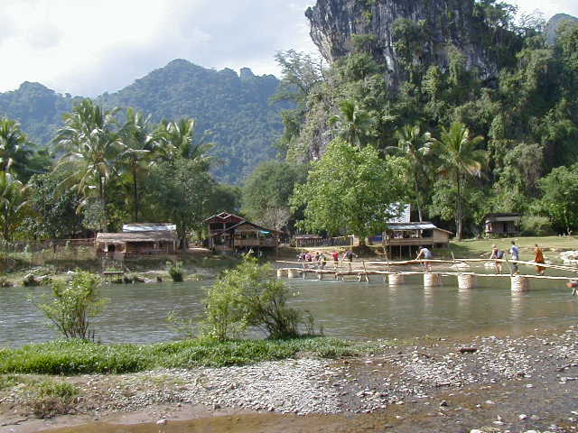 On 10 Dec '01 I entered Laos from Nong Khai Thailand by crossing the Friendship Bridge into Vientiane. I spent two days in Vientiane. I wasn't too impressed by the city but was impressed by the people. My first evening I walked along the river just to see what kind of night life there was. It was pretty mellow, just a short stretch of river with some bars with beer and music. I entered one, sat at a table by myself to have a beer, and was invited to sit at a table with group of young people. They practiced their very limited English, kept the beer coming and refused to let me pay, then gave me a lift back to my hotel. I was impressed by their generosity. I know they had to be well off people by Laos standards, but poor by U.S. standards.