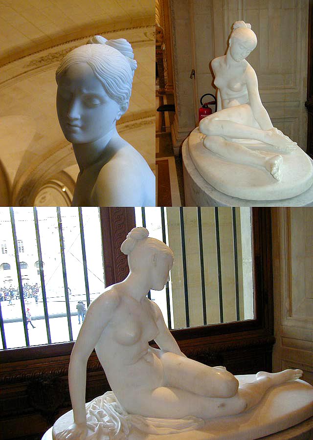 Italian Renaissance Sculptures--"Nymph with Scorpion" by Lorenzo Barolini; "Eros Awakening Psyche" by Antonia Canova, and a nymph who's name I didn't catch. Too bad, I like nymph's.