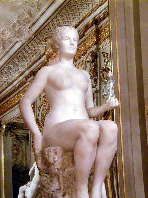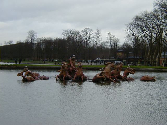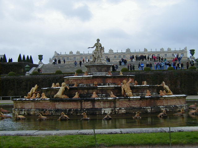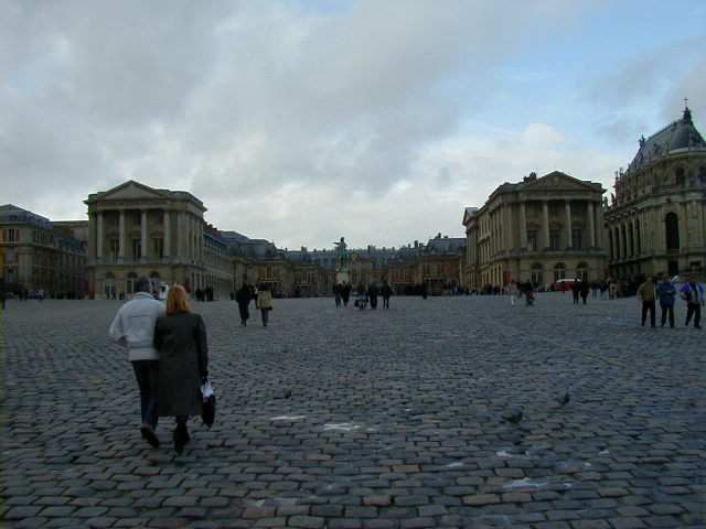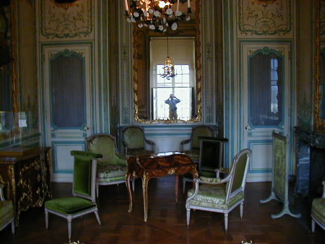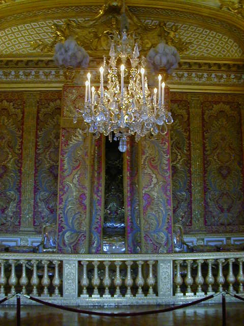 Before leaving the Louvre, one story about Louis the XIV. You'll notice in the picture of the bedroom that it is set up to put his bed on display. When Louis ruled, his bed really was on display. He didn't trust the French nobility, with good reason. To keep the nobles from plotting against him he arranged to keep them busy and visible, involving them in an endless series court ceremonies. Two of these elaborate ceremonies celebrated the "King going to bed" and the "King waking up". They did this every day. All important noblemen were invited to attend, and it would have been very suspicious if they refused the honor. It sounds incredibly tedious, but it worked. What a policy; using ceremonies to deliberately waste the time of people who serve you. Nowadays we do that with staff work.