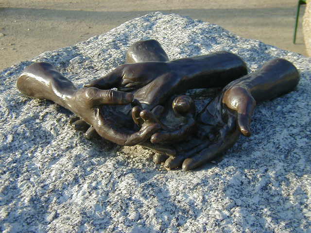 That's about it for the bar stories. Now for the pictures. Lots of pictures of Paris. Here's a view of the Seine, the Louvre entrance, and the arch near the entrance to the Louvre. There are below-ground entrances to the Louvre are on either side of this arch; very useful when the line to the main entrance is long. Last are Bronze hands in the Jardin des Tuileries. Kind of a startling sculpture that I stumbled across.