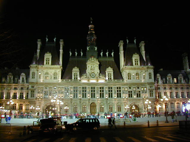 Some night shots of Paris, starting with the Paris Opera, then the Hotel de Ville with a skating rink in front, the Seine and the Louvre.