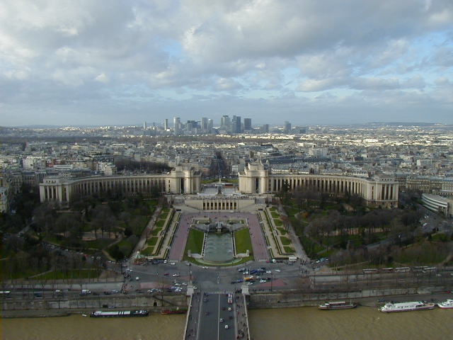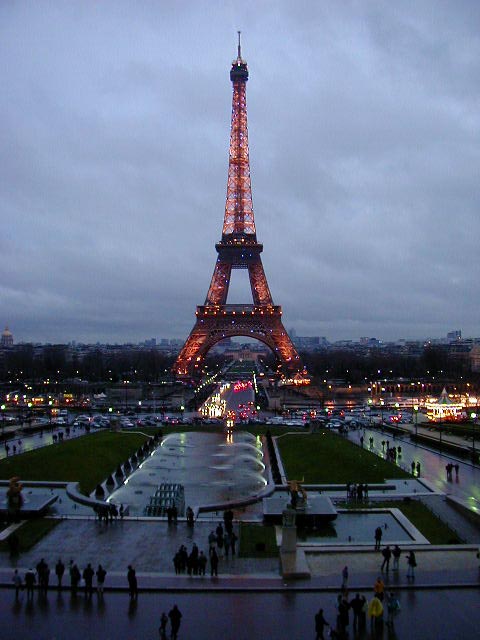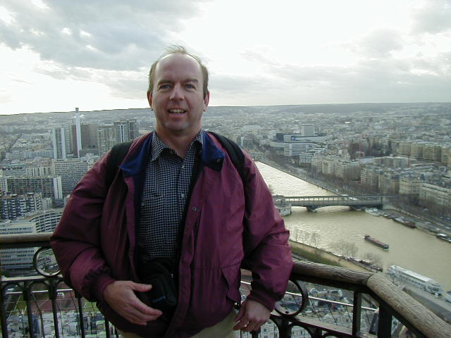 On my last attempt to get in, or on, the Eiffel Tower the lines were short and moving at an acceptable pace. This was because the top level had been closed due to high winds. So here are my Eiffel Tower pictures, from the ground and second level. The fourth, fifth, and sixth pictures are, in order--the Jardine du Trocadero, the Louvre (I think), and the mall to the southeast of the tower. The last picture is of me trying to look casual in the face of a strong, cold wind.