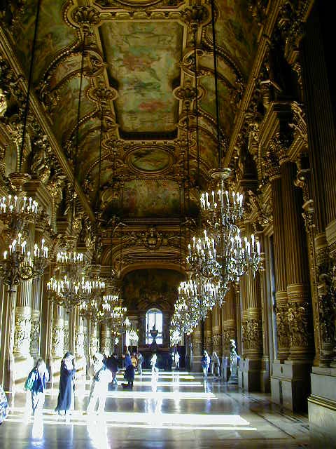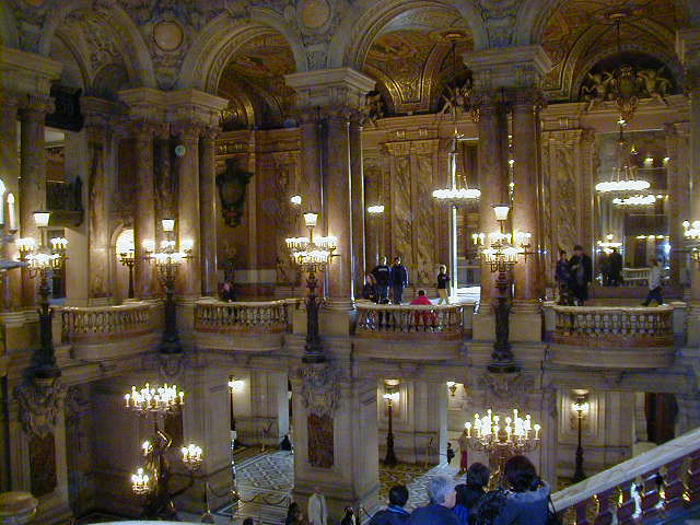 I've seen the old "Phantom of the Opera" movie with Claude Rains, been to the Andrew Lloyd Weber play, and even read the book. So of course I had to see the Paris Opera. It's nice, but they wouldn't let me underneath to see the lake. According to the book, there really is a lake under the Paris Opera. The last two shots are of the chandelier and its' base. You can't tell how secure it is, so would you sit under it?