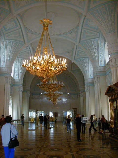 The Hermitage was begun in 1754 and was an imperial palace until 1917. In 1917 there was a change of government. It displays some of the wealth of imperial Russia, which was quite amazing. It's remarkable what you can accomplish with over 100 million peasants breaking their backs for you. The first picture is the Winter Palace, which contains most of the collection, followed by a Renoir, a Picasso, and a Rodin.