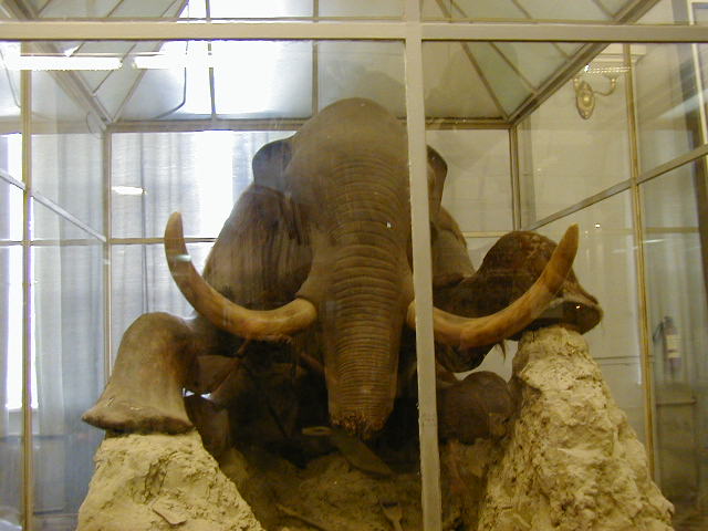 One other museum I had to see was the Museum of Natural History. This is the museum that has the 45,000 year old mammoth found frozen in the Siberian tundra. Other than what the wolves had eaten, it was intact. Finding the museum was easy, but finding the ticket office to the museum was a challenge. I finally noticed a small window off to the side of the building that people would stop by. I took a closer look and saw nothing that indicated it was a ticket office; it looked like a partially shuttered window to a dark room. But after watching a couple buy tickets I walked up to the window and put my money on the sill. A small old hand slowly reached out from the darkness and dragged the money back. It sort of looked like one of those gag boxes where you put a coin on top and a plastic hand comes out and grabs it. Then the hand slowly reappeared and slid a ticket out towards the edge of the sill. I took the ticket and went to the museum. Had I not been patient and determined I would not have figured out how to buy the entrance ticket. Russia has a lot to learn about marketing and customer service.