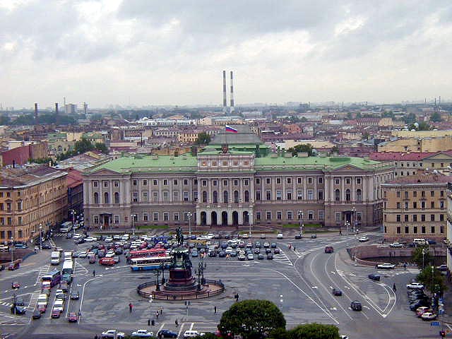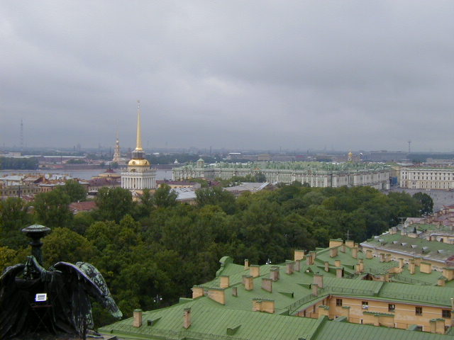 St Isaac's is fabulous on the inside, with lots of marble, gilt, ornamentation, paintings, and huge columns of lapis lazuli and malachite. Unfortunately no pictures are allowed, so you'll have to go see for yourself. However I did take some pictures from the top of the cathedral.