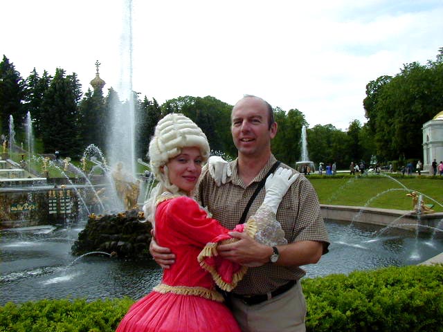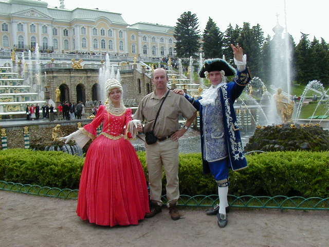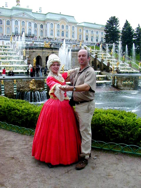 This costumed couple would look for dumb tourists and pose for pictures for twenty roubles, about seventy cents. Being a dumb tourist I went for it. Besides, she was a pretty lady and I hadn't had any luck with Russian women. There was one English speaking woman on Nevsky prospekt that I had tried to talk to, but then a Gypsy kid wrapped herself around my leg and started kissing my kneecap. Ever try impress a woman while a beggar is kissing your knee? It just doesn't work. Anyway this was as romantic as it got for me in St Petersburg, and it cost me seventy cents a shot.