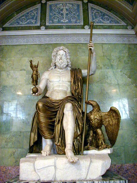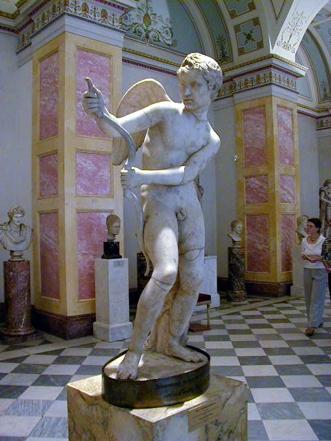 Finally, a few Greek and Roman statues--Hygea, goddess of health (note the snake); Eros playing with his bow; Jupiter from the first century A.D.; a Roman copy of a fifth century B.C. Aphrodite; and a slightly tilted picture of the room of sculptures. They can't all be gems.